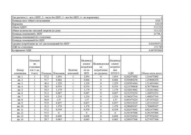 Порядок расчета услуги "отопление" установлен пунктами 42(1), 43 Правил предоставления коммунальных услуг собственникам и пользователям помещений в многоквартирных домах и жилых домов, утвержденных постановлением Правительства РФ от 6 мая 2011 г. № 354 «О предоставлении коммунальных услуг собственникам и пользователям помещений в многоквартирных домах и жилых домов» (далее – Правила), согласно утвержденным формулам расчета. Для Вашего дома, формула расчета коммунальной услуги «отопление» установлена пунктом 3(3) приложения №2 к Правилам № 354. Если МКД оборудован ОДПУ тепловой энергии, а все жилые и нежилые помещения дома – ИПУ, то плата за коммунальную услугу по отоплению рассчитывается следующим образом: Размер платы для одного жилого или нежилого помещения в МКД = Общая площадь Вашего помещения ÷ Общая площадь всех жилых и нежилых помещений в МКД × Объем тепловой энергии, предоставленный за расчетный период в МКД + Объем тепловой энергии на индивидуальное потребление за расчетный период, по показаниям ИПУ × Тариф на тепловую энергию Формула: Объем тепловой энергии, предоставленный за расчетный период в МКД = Объем тепловой энергии, потребленной за расчетный период в МКД, по показаниям ОДПУ – Суммарный объем тепловой энергии на индивидуальное потребление, по показаниям ИПУ Простым языком это означает, что если в многоквартирном доме есть ОДПУ (общедомовой прибор учета) и одновременно все жилые или нежилые помещения имеют ИПУ, то размер платы за коммунальную услугу по отоплению определяется: — по показаниям ИПУ; — к плате по показаниям ИПУ добавляется плата за коммунальную услугу на содержание общего имущества, рассчитываемая по ОДПУ за вычетом потребления объема (количества) тепловой энергии, потребленного во всех жилых или нежилых помещения (абз. 5 п. 42(1) Правил № 354).
