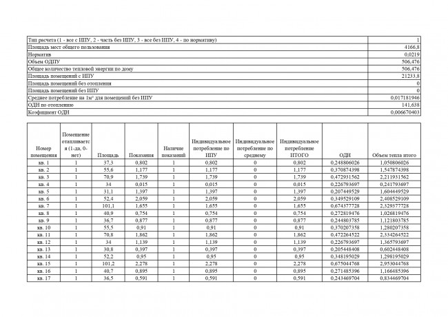 Порядок расчета услуги "отопление" установлен пунктами 42(1), 43 Правил предоставления коммунальных услуг собственникам и пользователям помещений в многоквартирных домах и жилых домов, утвержденных постановлением Правительства РФ от 6 мая 2011 г. № 354 «О предоставлении коммунальных услуг собственникам и пользователям помещений в многоквартирных домах и жилых домов» (далее – Правила), согласно утвержденным формулам расчета. Для Вашего дома, формула расчета коммунальной услуги «отопление» установлена пунктом 3(3) приложения №2 к Правилам № 354. Если МКД оборудован ОДПУ тепловой энергии, а все жилые и нежилые помещения дома – ИПУ, то плата за коммунальную услугу по отоплению рассчитывается следующим образом: Размер платы для одного жилого или нежилого помещения в МКД = Общая площадь Вашего помещения ÷ Общая площадь всех жилых и нежилых помещений в МКД × Объем тепловой энергии, предоставленный за расчетный период в МКД + Объем тепловой энергии на индивидуальное потребление за расчетный период, по показаниям ИПУ × Тариф на тепловую энергию Формула: Объем тепловой энергии, предоставленный за расчетный период в МКД = Объем тепловой энергии, потребленной за расчетный период в МКД, по показаниям ОДПУ – Суммарный объем тепловой энергии на индивидуальное потребление, по показаниям ИПУ Простым языком это означает, что если в многоквартирном доме есть ОДПУ (общедомовой прибор учета) и одновременно все жилые или нежилые помещения имеют ИПУ, то размер платы за коммунальную услугу по отоплению определяется: — по показаниям ИПУ; — к плате по показаниям ИПУ добавляется плата за коммунальную услугу на содержание общего имущества, рассчитываемая по ОДПУ за вычетом потребления объема (количества) тепловой энергии, потребленного во всех жилых или нежилых помещения (абз. 5 п. 42(1) Правил № 354).