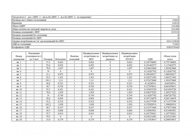 Порядок расчета услуги "отопление" установлен пунктами 42(1), 43 Правил предоставления коммунальных услуг собственникам и пользователям помещений в многоквартирных домах и жилых домов, утвержденных постановлением Правительства РФ от 6 мая 2011 г. № 354 «О предоставлении коммунальных услуг собственникам и пользователям помещений в многоквартирных домах и жилых домов» (далее – Правила), согласно утвержденным формулам расчета. Для Вашего дома, формула расчета коммунальной услуги «отопление» установлена пунктом 3(3) приложения №2 к Правилам № 354. Если МКД оборудован ОДПУ тепловой энергии, а все жилые и нежилые помещения дома – ИПУ, то плата за коммунальную услугу по отоплению рассчитывается следующим образом: Размер платы для одного жилого или нежилого помещения в МКД = Общая площадь Вашего помещения ÷ Общая площадь всех жилых и нежилых помещений в МКД × Объем тепловой энергии, предоставленный за расчетный период в МКД + Объем тепловой энергии на индивидуальное потребление за расчетный период, по показаниям ИПУ × Тариф на тепловую энергию Формула: Объем тепловой энергии, предоставленный за расчетный период в МКД = Объем тепловой энергии, потребленной за расчетный период в МКД, по показаниям ОДПУ – Суммарный объем тепловой энергии на индивидуальное потребление, по показаниям ИПУ Простым языком это означает, что если в многоквартирном доме есть ОДПУ (общедомовой прибор учета) и одновременно все жилые или нежилые помещения имеют ИПУ, то размер платы за коммунальную услугу по отоплению определяется: — по показаниям ИПУ; — к плате по показаниям ИПУ добавляется плата за коммунальную услугу на содержание общего имущества, рассчитываемая по ОДПУ за вычетом потребления объема (количества) тепловой энергии, потребленного во всех жилых или нежилых помещения (абз. 5 п. 42(1) Правил № 354).
