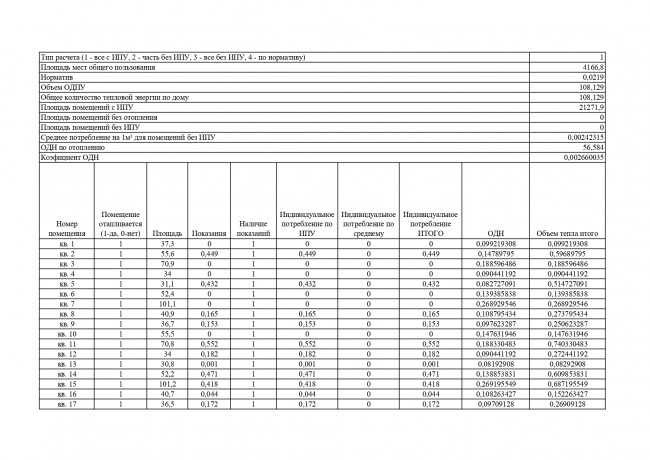 Порядок расчета услуги "отопление" установлен пунктами 42(1), 43 Правил предоставления коммунальных услуг собственникам и пользователям помещений в многоквартирных домах и жилых домов, утвержденных постановлением Правительства РФ от 6 мая 2011 г. № 354 «О предоставлении коммунальных услуг собственникам и пользователям помещений в многоквартирных домах и жилых домов» (далее – Правила), согласно утвержденным формулам расчета. Для Вашего дома, формула расчета коммунальной услуги «отопление» установлена пунктом 3(3) приложения №2 к Правилам № 354. Если МКД оборудован ОДПУ тепловой энергии, а все жилые и нежилые помещения дома – ИПУ, то плата за коммунальную услугу по отоплению рассчитывается следующим образом: Размер платы для одного жилого или нежилого помещения в МКД = Общая площадь Вашего помещения ÷ Общая площадь всех жилых и нежилых помещений в МКД × Объем тепловой энергии, предоставленный за расчетный период в МКД + Объем тепловой энергии на индивидуальное потребление за расчетный период, по показаниям ИПУ × Тариф на тепловую энергию Формула: Объем тепловой энергии, предоставленный за расчетный период в МКД = Объем тепловой энергии, потребленной за расчетный период в МКД, по показаниям ОДПУ – Суммарный объем тепловой энергии на индивидуальное потребление, по показаниям ИПУ Простым языком это означает, что если в многоквартирном доме есть ОДПУ (общедомовой прибор учета) и одновременно все жилые или нежилые помещения имеют ИПУ, то размер платы за коммунальную услугу по отоплению определяется: — по показаниям ИПУ; — к плате по показаниям ИПУ добавляется плата за коммунальную услугу на содержание общего имущества, рассчитываемая по ОДПУ за вычетом потребления объема (количества) тепловой энергии, потребленного во всех жилых или нежилых помещения (абз. 5 п. 42(1) Правил № 354).