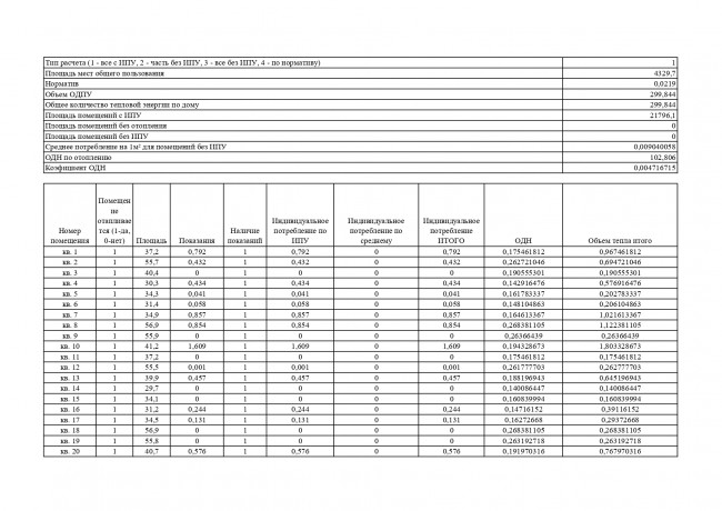 Порядок расчета услуги "отопление" установлен пунктами 42(1), 43 Правил предоставления коммунальных услуг собственникам и пользователям помещений в многоквартирных домах и жилых домов, утвержденных постановлением Правительства РФ от 6 мая 2011 г. № 354 «О предоставлении коммунальных услуг собственникам и пользователям помещений в многоквартирных домах и жилых домов» (далее – Правила), согласно утвержденным формулам расчета. Для Вашего дома, формула расчета коммунальной услуги «отопление» установлена пунктом 3(3) приложения №2 к Правилам № 354. Если МКД оборудован ОДПУ тепловой энергии, а все жилые и нежилые помещения дома – ИПУ, то плата за коммунальную услугу по отоплению рассчитывается следующим образом: Размер платы для одного жилого или нежилого помещения в МКД = Общая площадь Вашего помещения ÷ Общая площадь всех жилых и нежилых помещений в МКД × Объем тепловой энергии, предоставленный за расчетный период в МКД + Объем тепловой энергии на индивидуальное потребление за расчетный период, по показаниям ИПУ × Тариф на тепловую энергию Формула: Объем тепловой энергии, предоставленный за расчетный период в МКД = Объем тепловой энергии, потребленной за расчетный период в МКД, по показаниям ОДПУ – Суммарный объем тепловой энергии на индивидуальное потребление, по показаниям ИПУ Простым языком это означает, что если в многоквартирном доме есть ОДПУ (общедомовой прибор учета) и одновременно все жилые или нежилые помещения имеют ИПУ, то размер платы за коммунальную услугу по отоплению определяется: — по показаниям ИПУ; — к плате по показаниям ИПУ добавляется плата за коммунальную услугу на содержание общего имущества, рассчитываемая по ОДПУ за вычетом потребления объема (количества) тепловой энергии, потребленного во всех жилых или нежилых помещения (абз. 5 п. 42(1) Правил № 354).