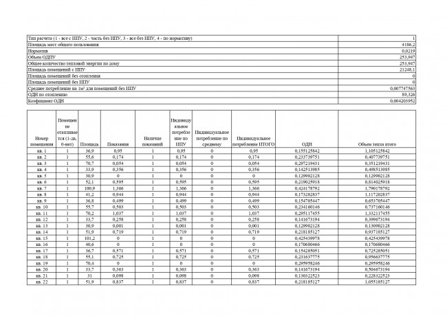 Порядок расчета услуги "отопление" установлен пунктами 42(1), 43 Правил предоставления коммунальных услуг собственникам и пользователям помещений в многоквартирных домах и жилых домов, утвержденных постановлением Правительства РФ от 6 мая 2011 г. № 354 «О предоставлении коммунальных услуг собственникам и пользователям помещений в многоквартирных домах и жилых домов» (далее – Правила), согласно утвержденным формулам расчета. Для Вашего дома, формула расчета коммунальной услуги «отопление» установлена пунктом 3(3) приложения №2 к Правилам № 354. Если МКД оборудован ОДПУ тепловой энергии, а все жилые и нежилые помещения дома – ИПУ, то плата за коммунальную услугу по отоплению рассчитывается следующим образом: Размер платы для одного жилого или нежилого помещения в МКД = Общая площадь Вашего помещения ÷ Общая площадь всех жилых и нежилых помещений в МКД × Объем тепловой энергии, предоставленный за расчетный период в МКД + Объем тепловой энергии на индивидуальное потребление за расчетный период, по показаниям ИПУ × Тариф на тепловую энергию Формула: Объем тепловой энергии, предоставленный за расчетный период в МКД = Объем тепловой энергии, потребленной за расчетный период в МКД, по показаниям ОДПУ – Суммарный объем тепловой энергии на индивидуальное потребление, по показаниям ИПУ Простым языком это означает, что если в многоквартирном доме есть ОДПУ (общедомовой прибор учета) и одновременно все жилые или нежилые помещения имеют ИПУ, то размер платы за коммунальную услугу по отоплению определяется: — по показаниям ИПУ; — к плате по показаниям ИПУ добавляется плата за коммунальную услугу на содержание общего имущества, рассчитываемая по ОДПУ за вычетом потребления объема (количества) тепловой энергии, потребленного во всех жилых или нежилых помещения (абз. 5 п. 42(1) Правил № 354).