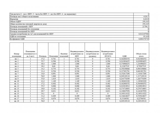 Порядок расчета услуги "отопление" установлен пунктами 42(1), 43 Правил предоставления коммунальных услуг собственникам и пользователям помещений в многоквартирных домах и жилых домов, утвержденных постановлением Правительства РФ от 6 мая 2011 г. № 354 «О предоставлении коммунальных услуг собственникам и пользователям помещений в многоквартирных домах и жилых домов» (далее – Правила), согласно утвержденным формулам расчета. Для Вашего дома, формула расчета коммунальной услуги «отопление» установлена пунктом 3(3) приложения №2 к Правилам № 354. Если МКД оборудован ОДПУ тепловой энергии, а все жилые и нежилые помещения дома – ИПУ, то плата за коммунальную услугу по отоплению рассчитывается следующим образом: Размер платы для одного жилого или нежилого помещения в МКД = Общая площадь Вашего помещения ÷ Общая площадь всех жилых и нежилых помещений в МКД × Объем тепловой энергии, предоставленный за расчетный период в МКД + Объем тепловой энергии на индивидуальное потребление за расчетный период, по показаниям ИПУ × Тариф на тепловую энергию Формула: Объем тепловой энергии, предоставленный за расчетный период в МКД = Объем тепловой энергии, потребленной за расчетный период в МКД, по показаниям ОДПУ – Суммарный объем тепловой энергии на индивидуальное потребление, по показаниям ИПУ Простым языком это означает, что если в многоквартирном доме есть ОДПУ (общедомовой прибор учета) и одновременно все жилые или нежилые помещения имеют ИПУ, то размер платы за коммунальную услугу по отоплению определяется: — по показаниям ИПУ; — к плате по показаниям ИПУ добавляется плата за коммунальную услугу на содержание общего имущества, рассчитываемая по ОДПУ за вычетом потребления объема (количества) тепловой энергии, потребленного во всех жилых или нежилых помещения (абз. 5 п. 42(1) Правил № 354).